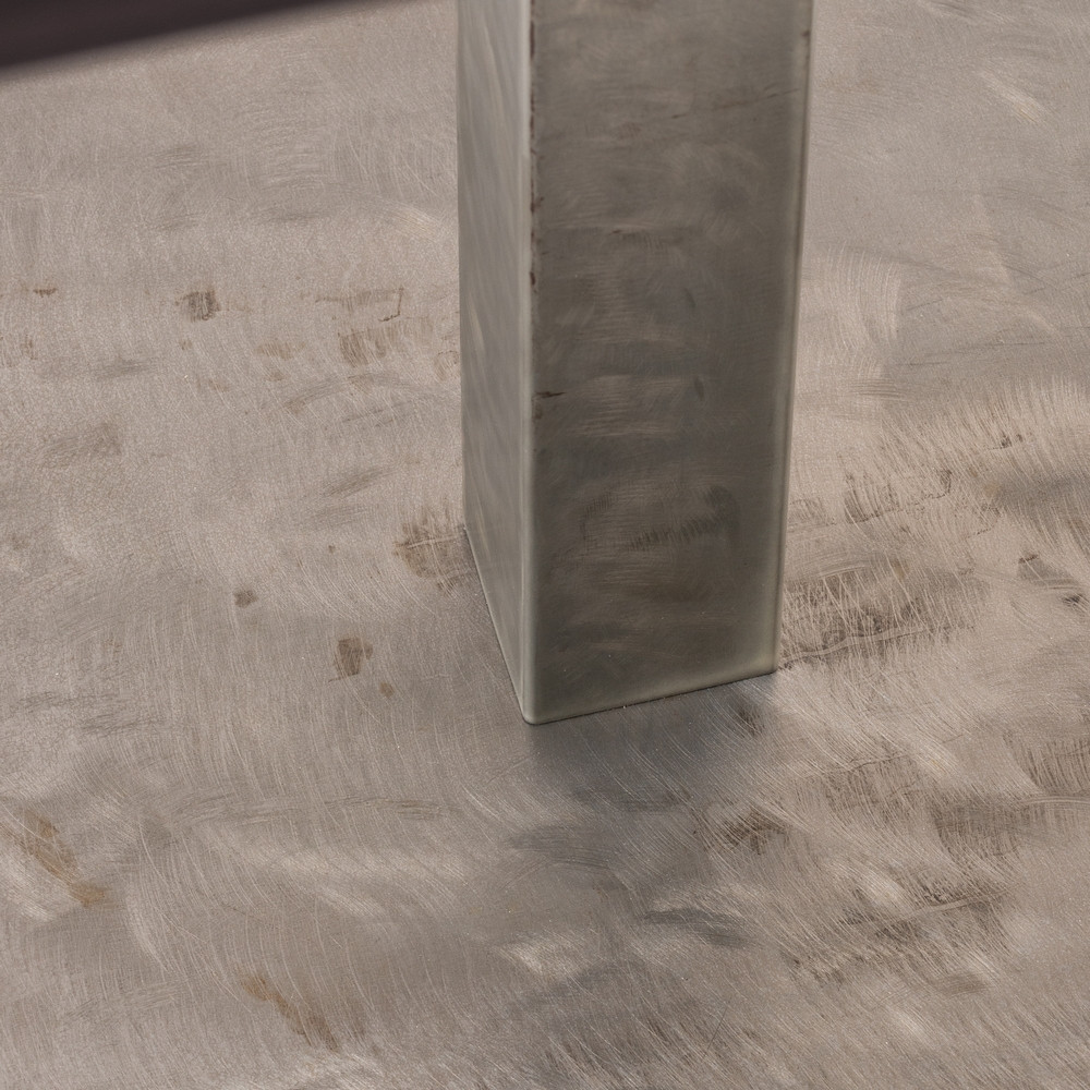 Tavolo con base in metallo verniciato colore nero semilucido con piedini registrabili, colonna in tubo quadro, piano in nobilitato bordo ABS in tinta