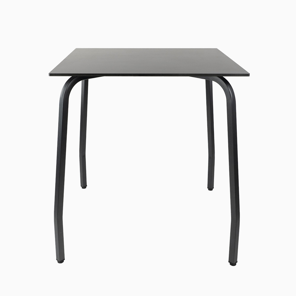 Tavolo con gambe in metallo a sezione quadrata verniciato colore antracite, piedini registrabili e piano in stratificato bordo piatto