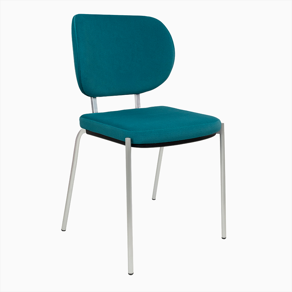 Elegante sedia impilabile in metallo, realizzata con attente lavorazioni e cura artigianale, imbottita con materiali di elevata qualitĂ , velluto ignifugo e antimacchia, adatta per sale pranzo, sale riunione e sale conferenza