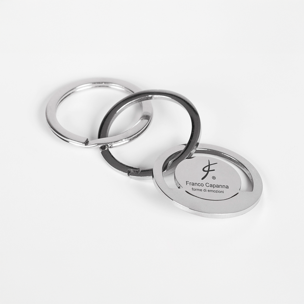 Oggetto moda, tre anelli che si legano tra loro danno forma a un oggetto di tendenza, in parte lucidato a mano.