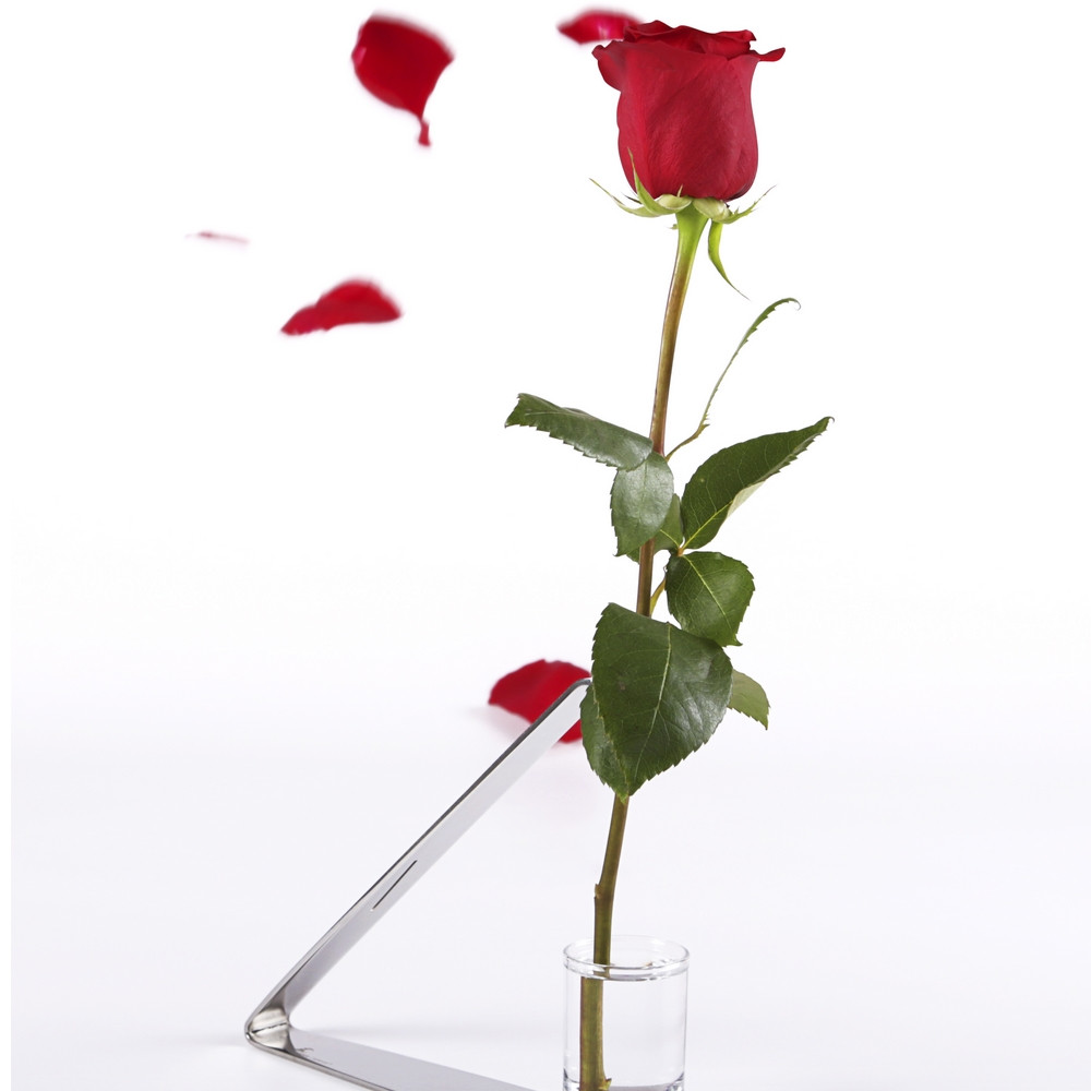 Portarosa, innovativo oggetto di design ricavato da un unico pezzo, per valorizzare una rosa e far vivere nuove emozioni, in acciaio inox lucidato a mano.